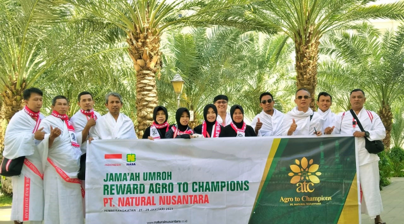 Bukti nyata PT.Natural Nusantara memberangkatkan pemenang terpilih program reward umroh AGRO TO CHAMPION untuk beribadah ke tanah suci pada 21 - 29 Januari 2023. Mereka terdiri 6 orang dari pemenang dari program AGRO CHAMPION 2022, para Mitra Usaha berprestasi NASA ini berangkat menuju tanah suci di dampingi oleh bapak Eko Zukifli selaku technical service pertanian dan perkebunan PT.Natural Nusantara.