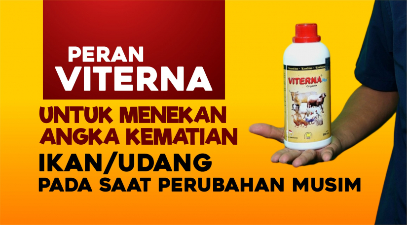 Peran VITERNA Plus untuk Menekan Angka Kematian Ikan/Udang pada saat Perubahan Musim.Perubahan musim adalah hal lazim terjadi di alam. Namun perubahan yang terlalu ekstrem akan berdampak buruk terhadap udang yang dibudidayakan. Pergantian musim dapat mengakibatkan guncangan pada kualitas air tambak. Sehingga, kondisi ini dapat memicu meningkatnya prevalensi bibit penyakit.