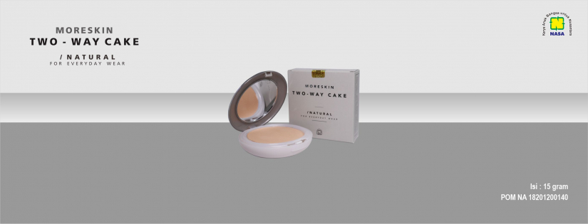 MORESKIN TWO WAY CAKE NATURAL , produk bedak tabur ringan dengan warna lebih kalem alami sehingga dapat membuat tampilan wajah natural bersinar
